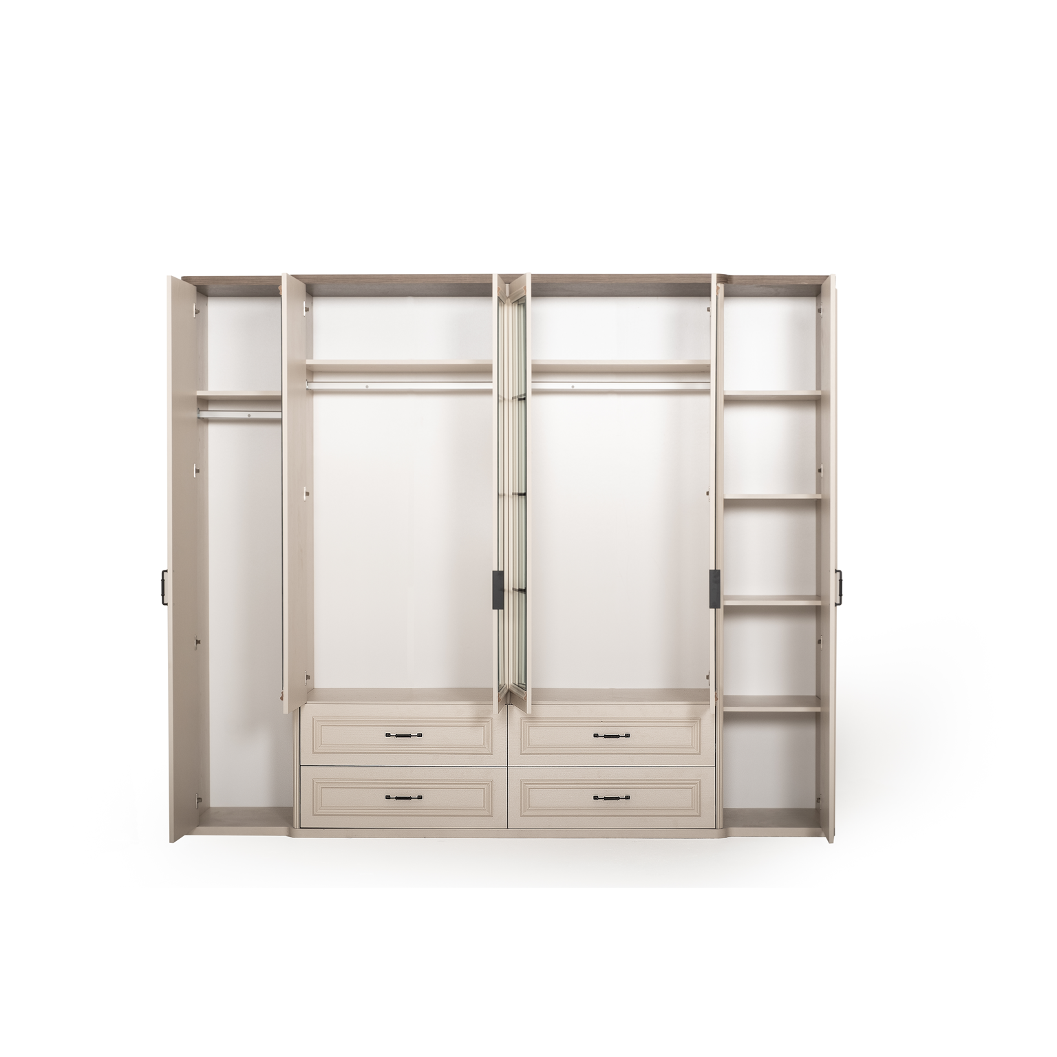 Dolap Aynalı ve Kapaklıdır. Dolap iç rafları ve askılıkları günlük kullanıma oldukça uygundur.