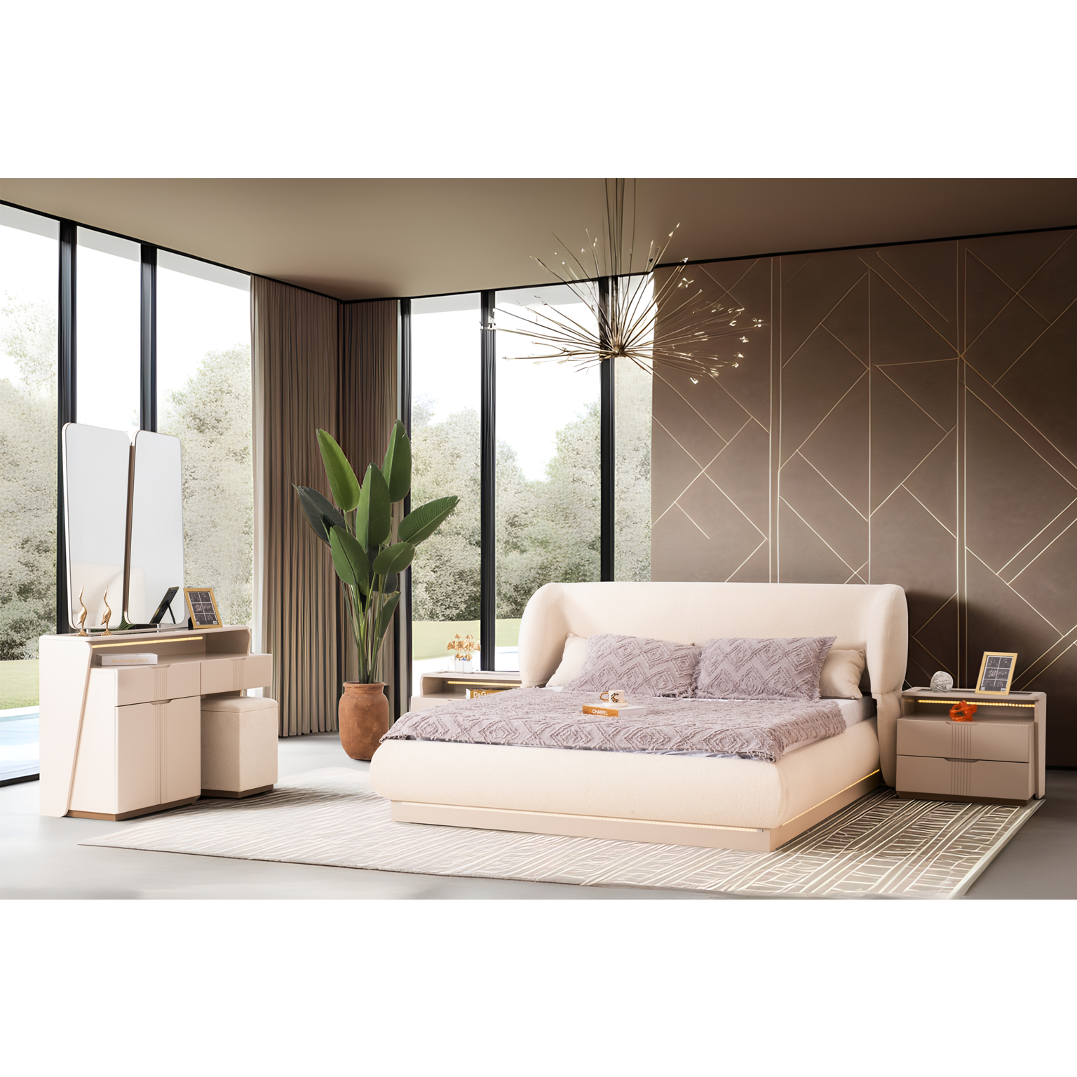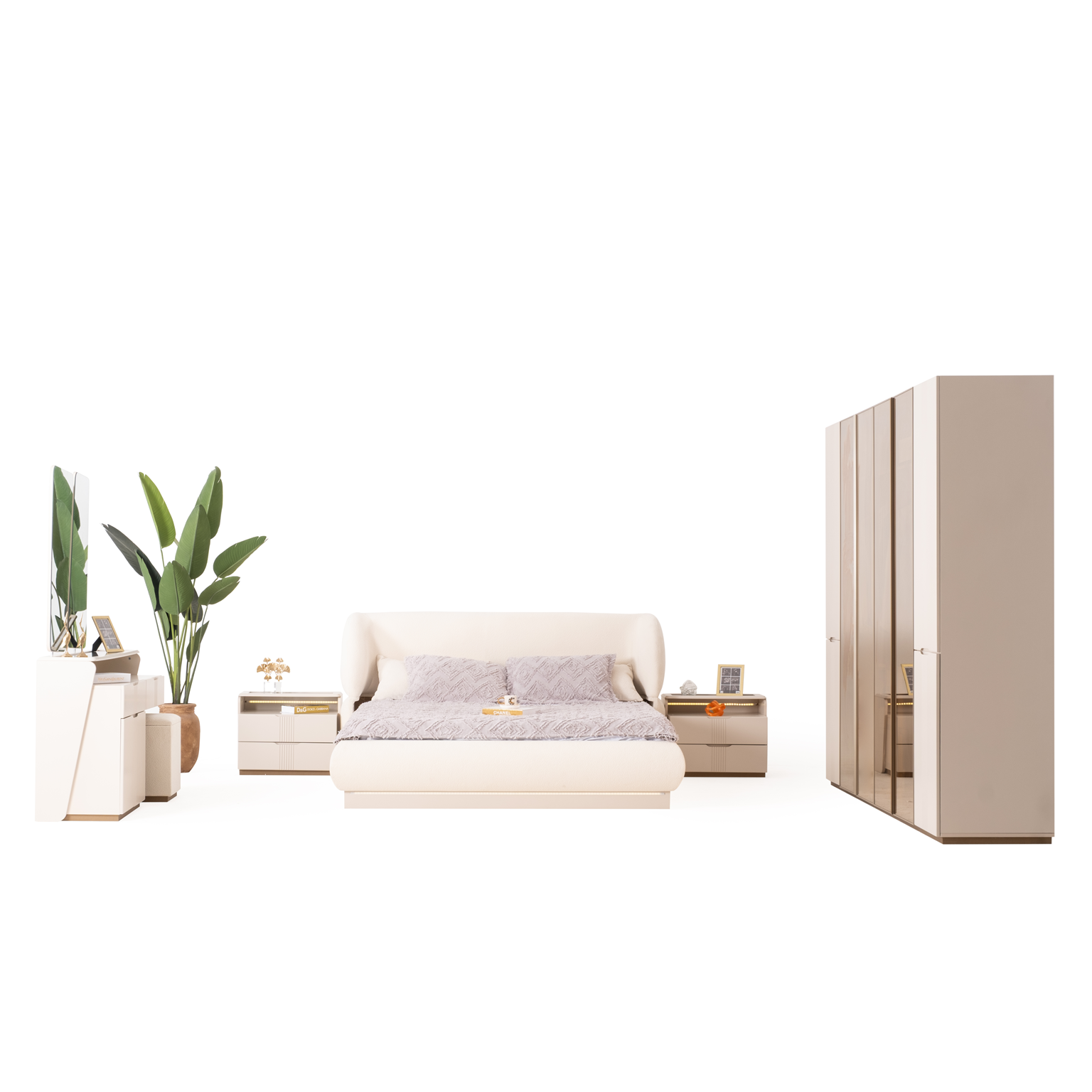 Takım İçeriği Dolap, Karyola, Karyola Başucu, Şifonyer ve Aynası, 2 Adet Komodin (Takım içeriğini bazalı karyola olarak değiştirebilirsiniz.)