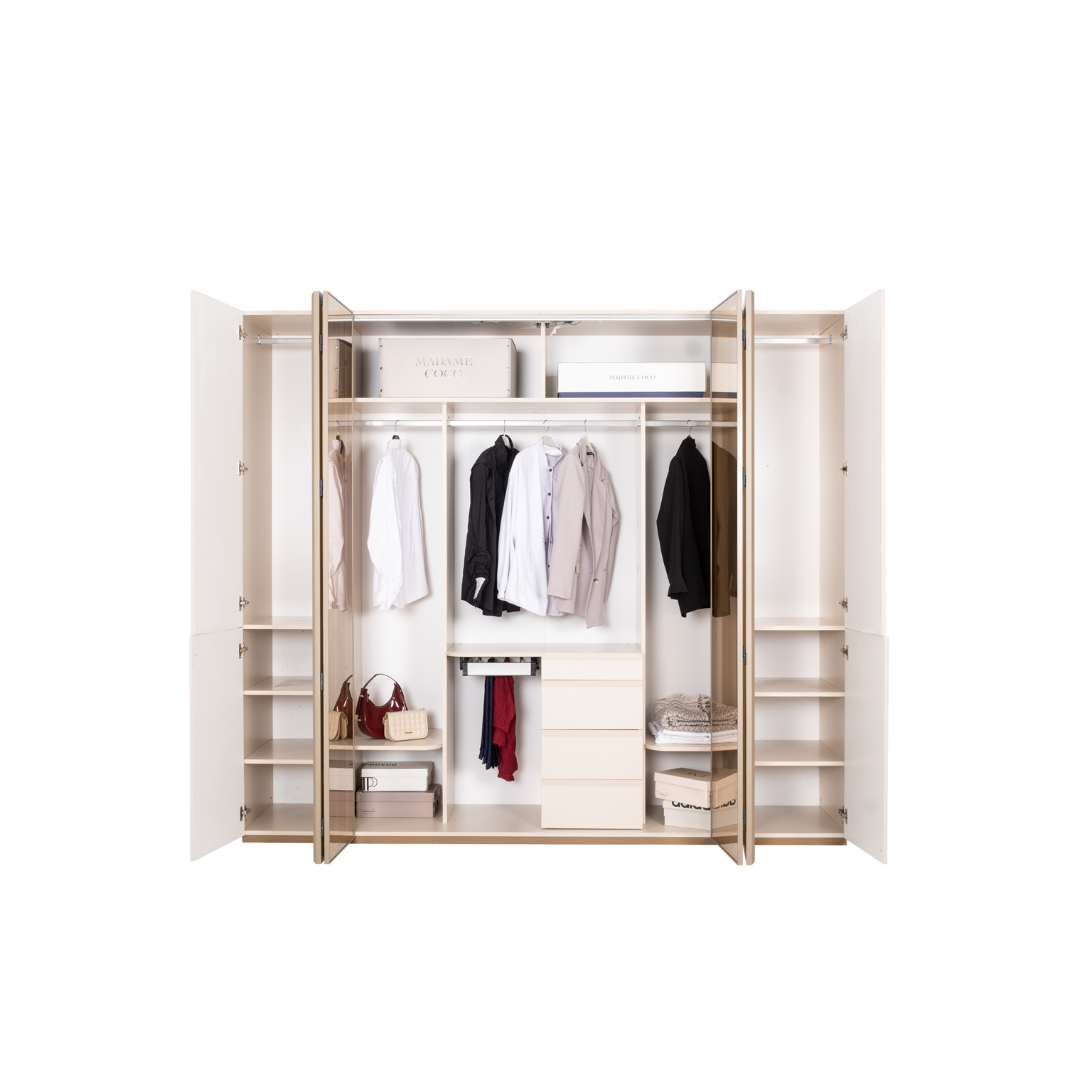Dolap Aynalı ve Kapaklıdır. Dolap iç rafları ve askılıkları günlük kullanıma oldukça uygundur.